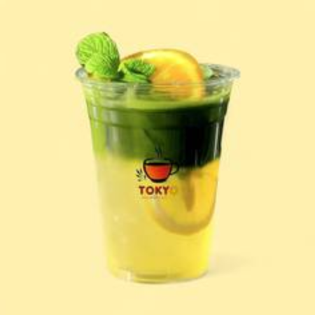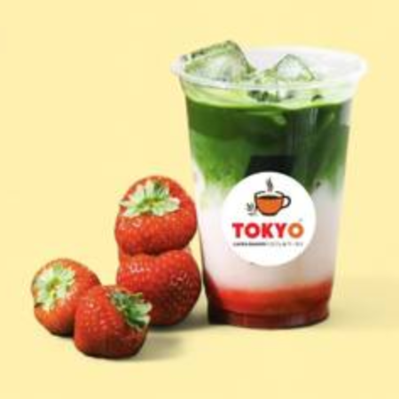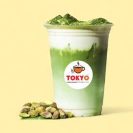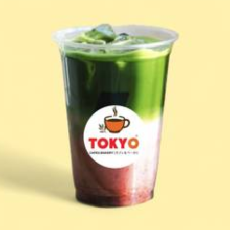 Pomegranate juice, iced milk, matcha, and vanilla ice cream.