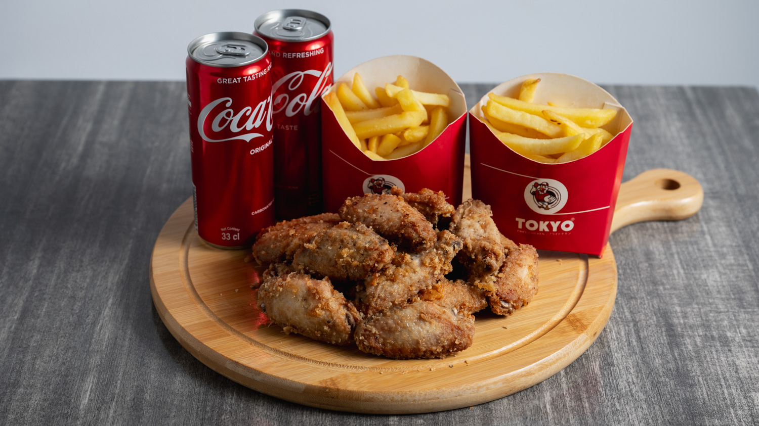 12 hot wings (served with 2 fries & 2 drinks)