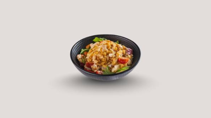 Chicken Karaage, lettuce, avocado, bell pepper, and cashew nuts topped with curry mayonnaise.