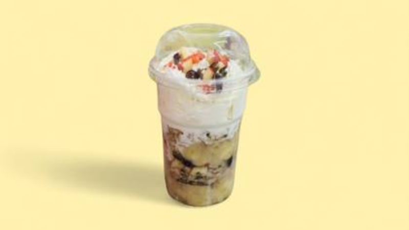 Milk, oats, banana, apple, grapes, strawberry ice cream