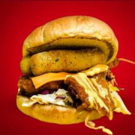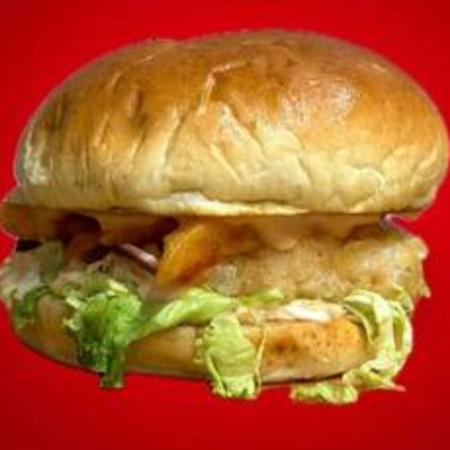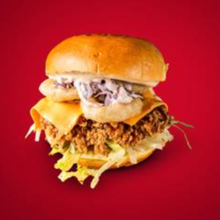 Sweet chili and garlic mayonnaise glazed chicken fillet, coleslaw, red cabbage, cheddar cheese, mozzarella sticks served in a soft homemade bun (served with a fries and drink).