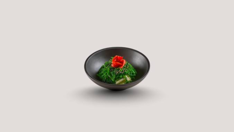 Lettuce, wakame, tomatoes, and mixed sesame seeds.