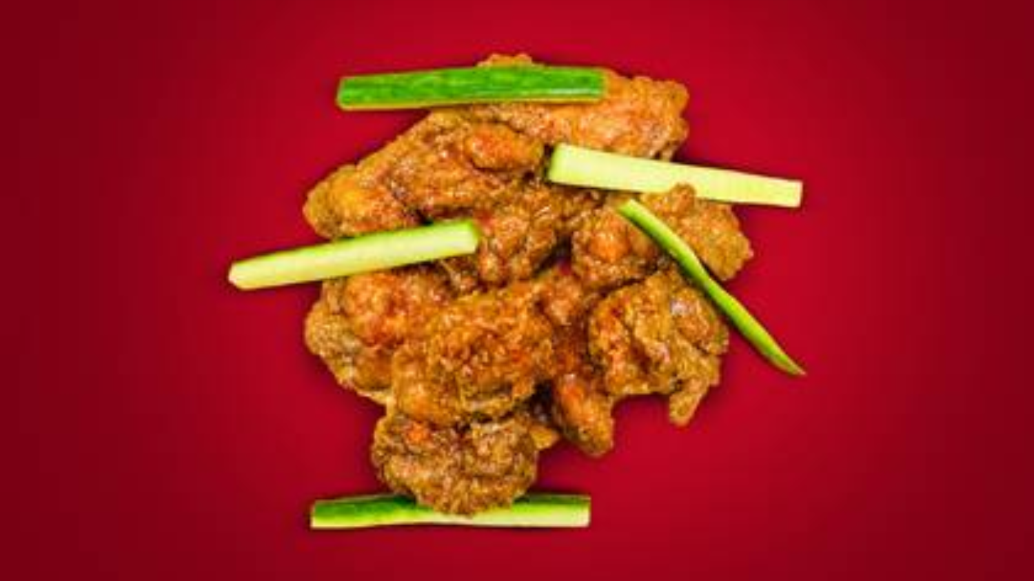 Japanese inspired boneless chicken (9 pcs) mixed with spicy lemon lime sauce and Cajun powder, topped with cucumber slices